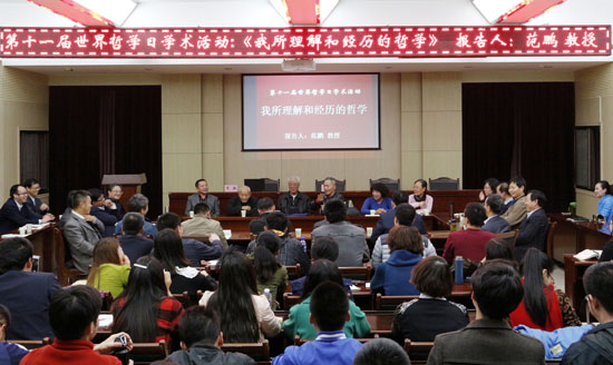 11月19日,yl6809永利开展庆祝第十一届“世界哲学日”学术研讨活动。省委党校常务副校长范鹏教授、我校党委书记陈克恭研究员和学校有关部门负责人,yl6809永利哲学系离退休教授及师生代表参加活动。