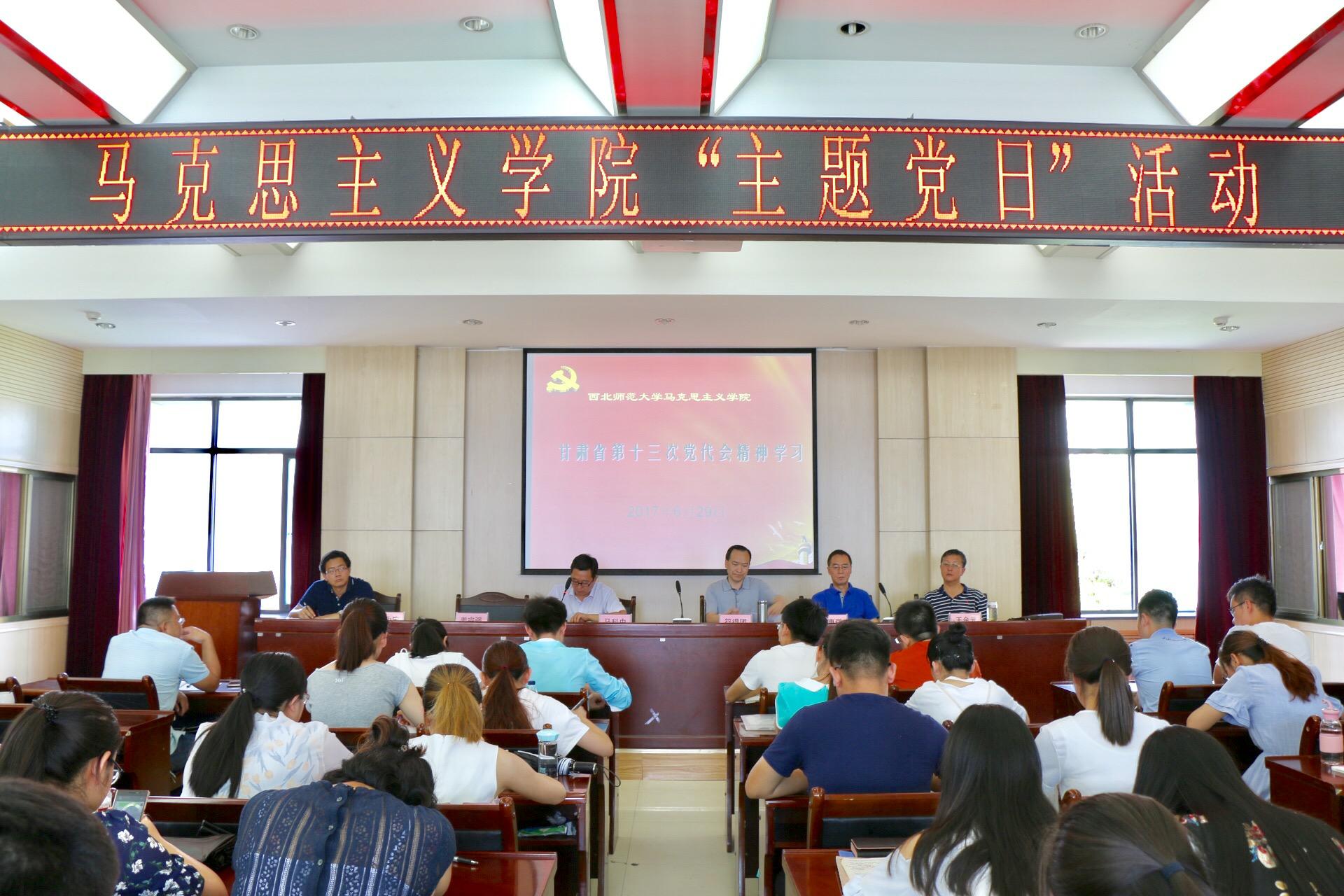 学院党委副书记马科中同志组织全体党员集中学习甘肃省党的十三次党代会精神。