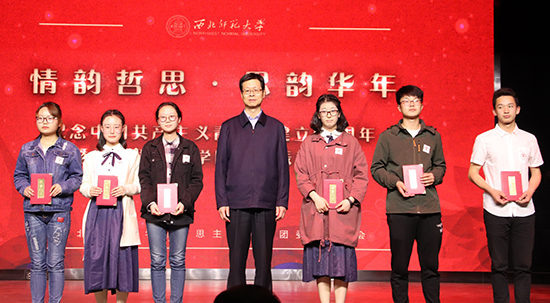 刘仲奎和学院负责人分别为获得国家奖学金、省级“三好学生”、学校奖学金的同学及“五•四”先进集体和优秀个人颁发荣誉证书。