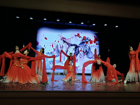 晚会在激昂热烈的劲舞《eiei》中拉开序幕,舞蹈《霸王别姬》《梦中的额吉》《九歌·山鬼》,器乐合奏《美丽的神话》,歌曲《听妈妈的话》《雪域仙女》《中国》,诗朗诵《黄河颂》《以梦为马》和相声《夜行记》等精彩节目,展现了学院师生团结和谐、积极向上的精神风貌。