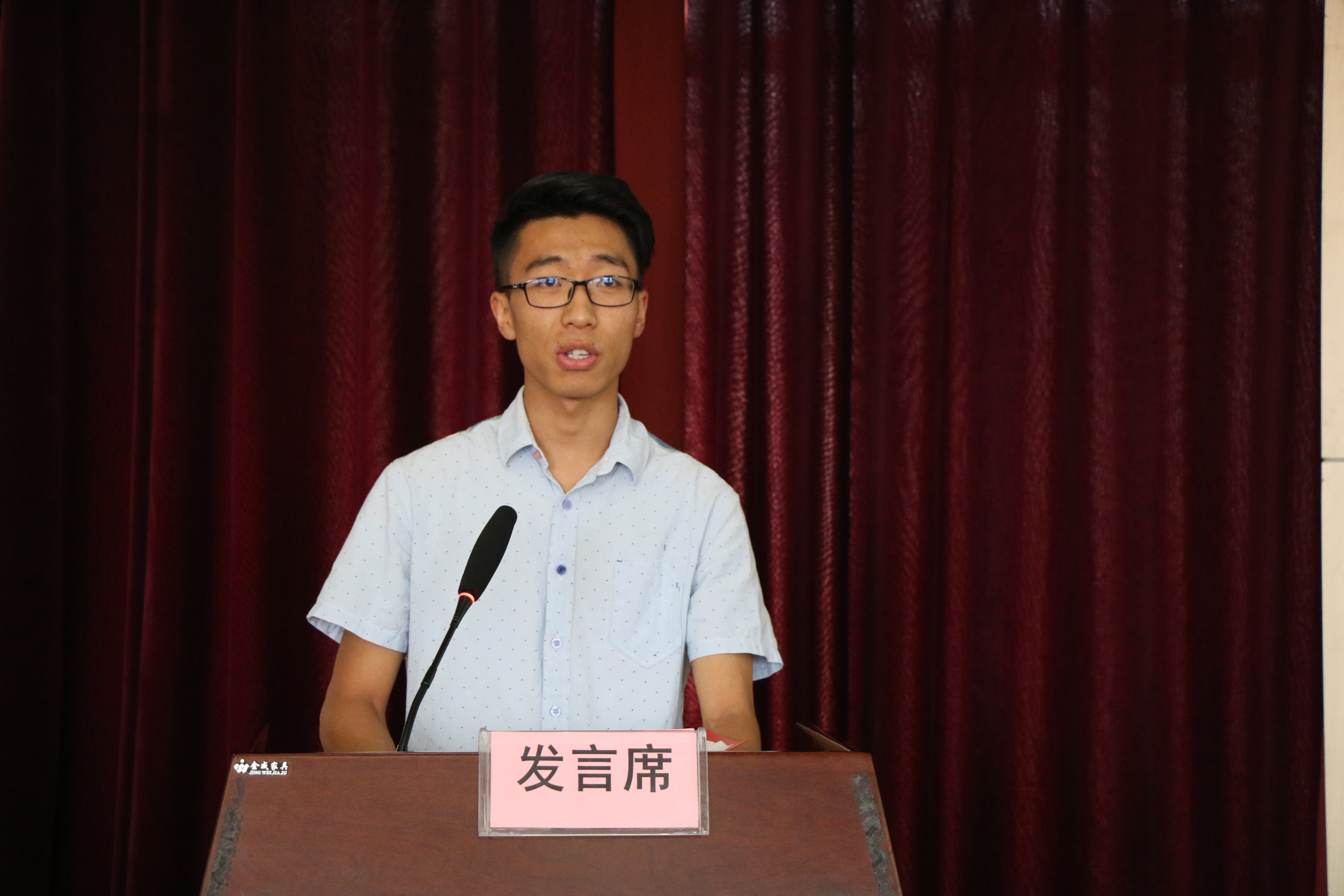 2018级思想政治教育2班王超潮同学代表本科新生从坚持学习、学会生活等方面做了精彩的发言。