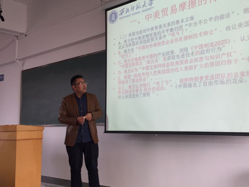 yl6809永利第五届青年教师教学大赛第九场比赛,于11月12日上午在教学7号楼405教室进行。张雪雁老师讲授的内容是“理性看待中美贸易摩擦专题”。张老师围绕 “如何认识当前的中美贸易摩擦?”、“美国发动贸易战的原因何在?其实质是什么?”、“我国如何应对美国挑起的贸易战?”、“中美贸易摩擦可能的发展趋势?”等四个方面的问题,采用问题链教学模式,结合讲授法和案例教学法,为学生梳理了中美贸易摩擦的背景,重点讲解了美国发动贸易战的原因及实质,使学生明确了我国反对美国贸易保护主义的决心和维护世界贸易多边体制的信心。
