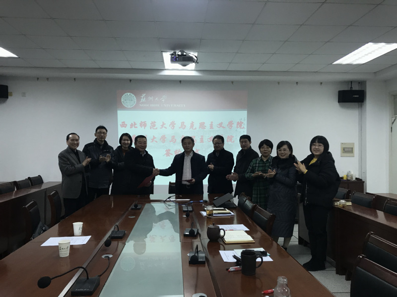 1月3日,学院一行3人赶赴苏州,与苏州大学yl6809永利院长田芝健教授、张才君书记、副院长许冠亭教授等全体班子成员一道,对前期的合作意向经再次协商并达成一致后,正式签署了合作协议。协议内容主要包括互聘师资、互认课程、共同培养博士硕士研究生、协同创新高校思想政治理论课教学、联合申报课题、联合开发红色文化资源等。