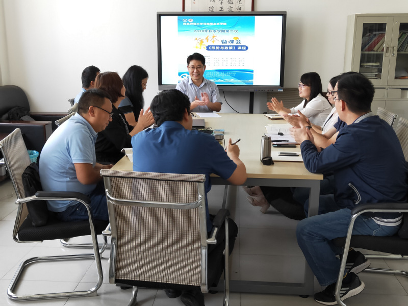 此次备课会主要围绕秋季开学伊始,在疫情还未完全消除的情况下,如何更好更有效的推进全校《形势与政策》课的教学工作。会议由形势与政策研究所所长周方副教授主持,参会人员有史小宁副院长、黎进萍主任、魏彩萍教授、王树亮副教授、袁维杰副教授、张钰讲师、漆调兰讲师、张江波讲师、翟玉华讲师等学院相关老师。