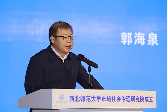 郭海泉在致辞中表示,西北师范大学市域社会治理研究院的成立,将为安宁区坚持围绕“精致兰州、品质安宁”城市建设目标,打通基层治理“最后一公里”提供强有力支撑。