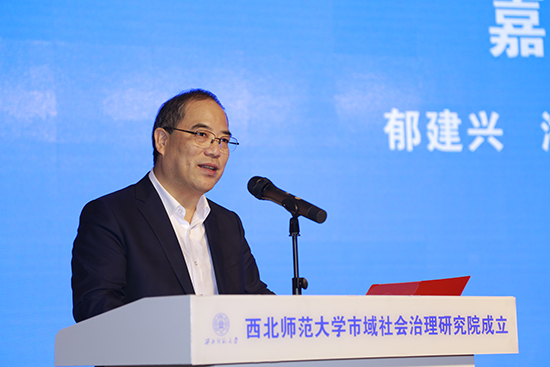 郁建兴在致辞中表示,浙江大学社会治理研究院将立足于东西部地区社会治理经验的互通、互学与互鉴,给予西北师范大学市域社会治理研究院支持与合作,旨在打造浙江与西北欠发达地区研究社会治理问题、破解社会治理难题、交流社会治理经验、展示社会治理成果的重要平台,为国家治理体系与治理能力的现代化提供智力支持和经验样本。
