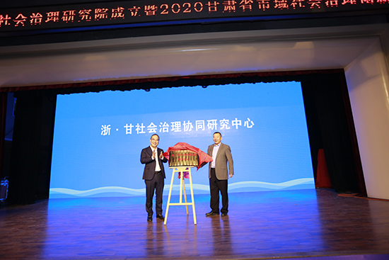 仪式上,孙燕飞、张俊宗、郁建兴、杨金泉、赵学忠、惠强、郭海泉共同为西北师范大学市域社会治理研究院揭牌;郁建兴、王宗礼为“浙·甘社会治理协同研究中心”中心揭牌。同时,孙燕飞、张俊宗、王光庆共同启动由甘肃日报社联合西北师范大学市域社会治理研究院举办的“2020甘肃省市域社会治理创新实践案例征集”仪式;王思斌、王宗礼及西固区委常委、政法委书记李宗科共同发布《理念、制度与实践——基层社会治理研讨会》主要理论成果。