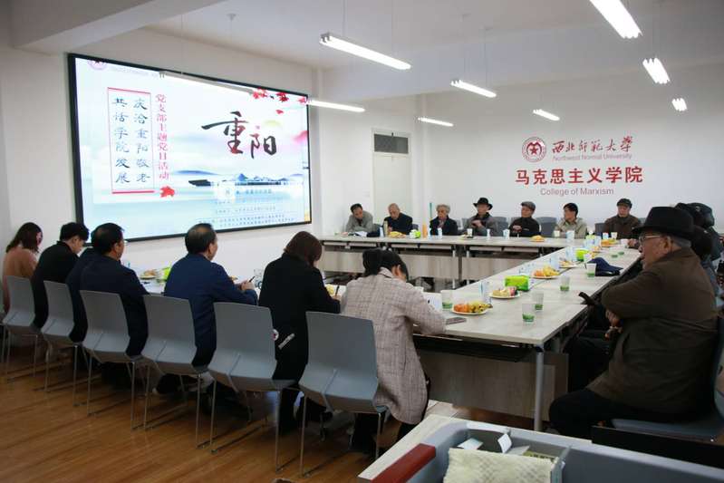 十月毓苑,金菊吐蕊,银杏灿烂。10月22日下午,阳光明媚,受yl6809永利党政管理与资料中心党支部邀请,离退休教职工党支部的老党员们,神采奕奕地杖藜相约,共赴一场别样的党组织生活会。下午三时,在气氛温暖祥和的yl6809永利510会议室里,离退休教职工党员和学院党委书记符得团、院长王宗礼、党政管理与资料中心的全体党员围坐在一起,共同举行“庆洽重阳敬老,共话学院发展”重阳节联谊慰问主题党日活动。活动由党政管理与资料中心党支部书记黎进萍主持,辅导员毛娅楠代表学院党政管理与资料中心党支部向离退休教职工党员致重阳节贺词。