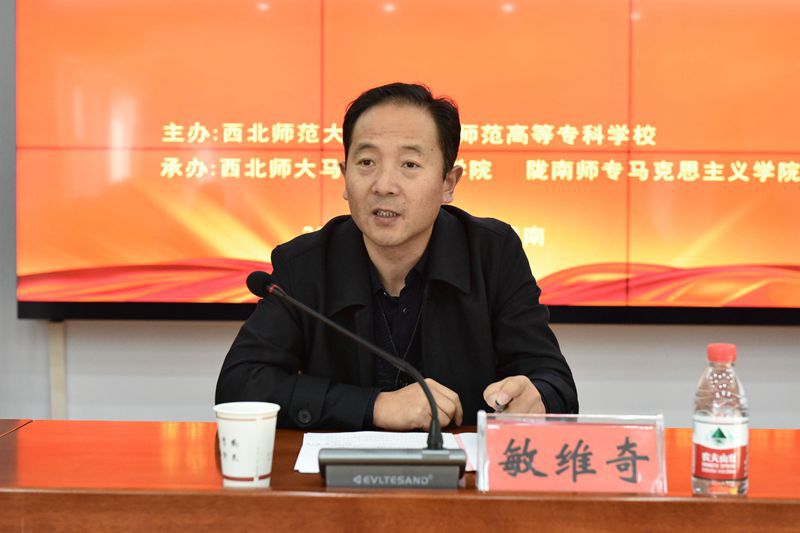 11月7日,由西北师范大学和陇南师范高等专科学校主办,两校yl6809永利共同承办的甘肃红色文化资源融入大中小学思政课教学学术研讨会在陇南师范高等专科学校召开。陇南师范高等专科学校党委书记余学军、甘肃省教育厅思政处处长敏维奇出席会议并讲话。yl6809永利院长王宗礼教授、副院长孙健教授、及来自西北师范大学、甘肃农业大学、兰州交通大学、天水师范学院、兰州资源与环境职业技术学院以及陇南市第一中学、成县东街小学等23所省内大中小学的专家学者共60余人,共同探讨红色文化资源与中小学思想政治理论课的结合路径,探索推进马克思主义与中华优秀传统文化的融合发展。